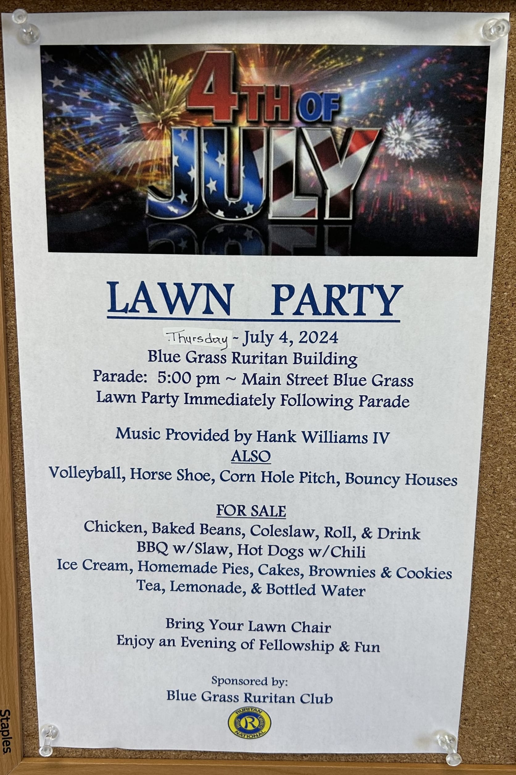 Celebrate Independence Day with a parade, lawn party, food, and live music in Blue Grass, Virginia!