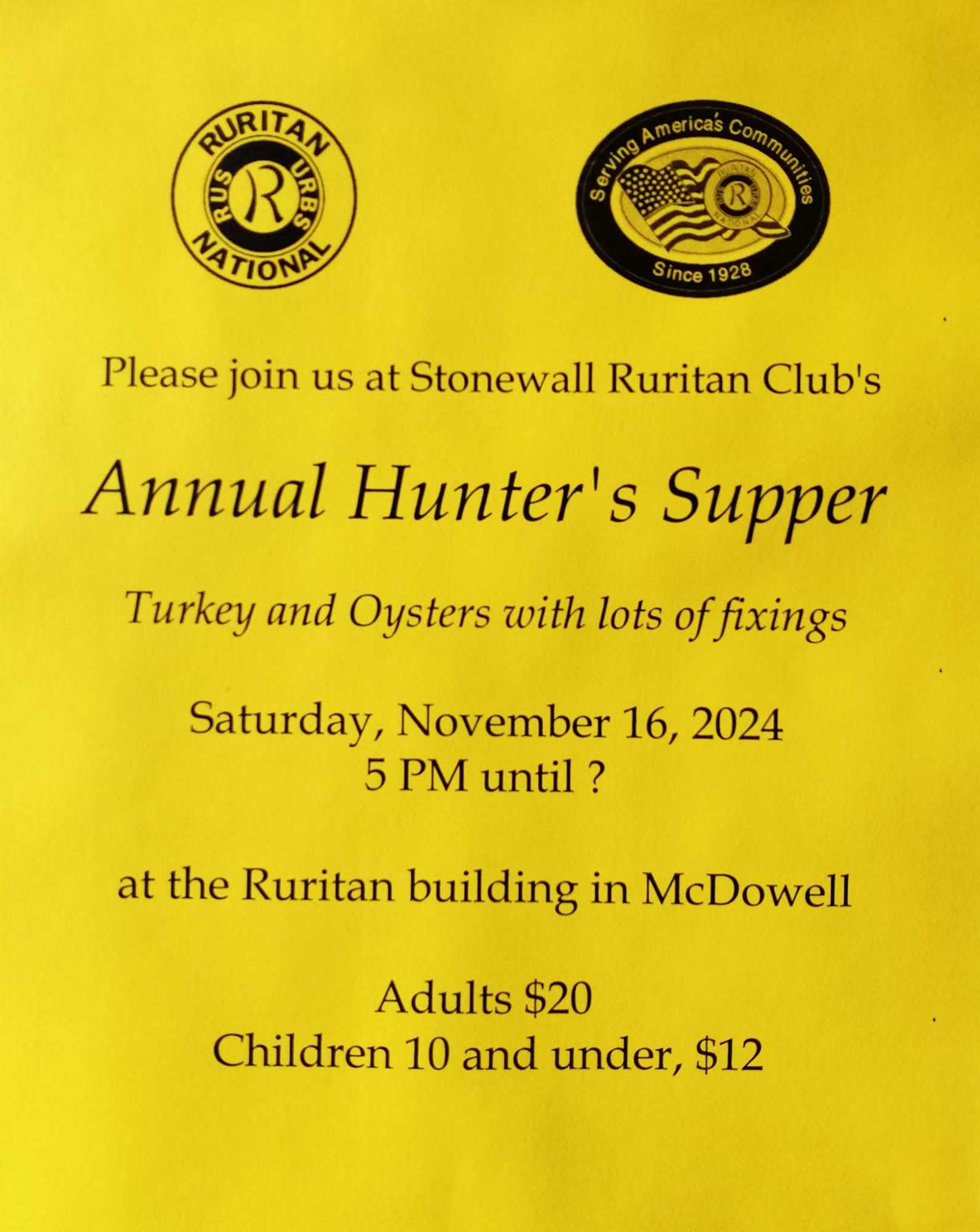 Get your fill at the Stonewall Ruritan Club's Annual Hunter’s Supper!