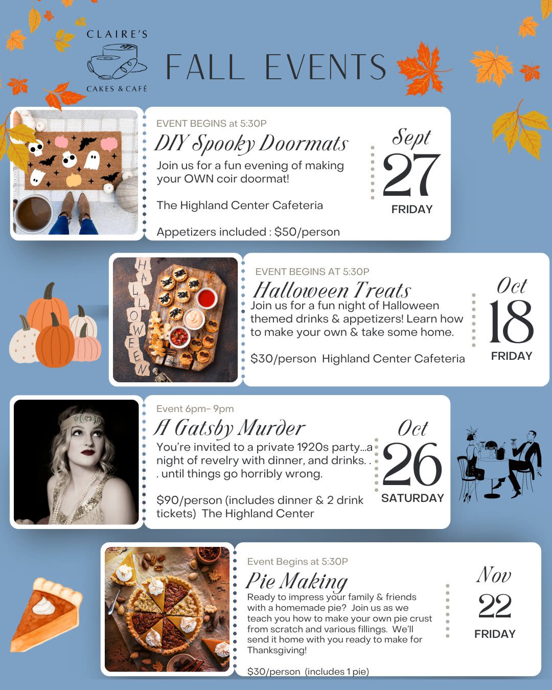 Halloween Appetizer and Drink Making -- Claire's Cakes & Café Fall Events