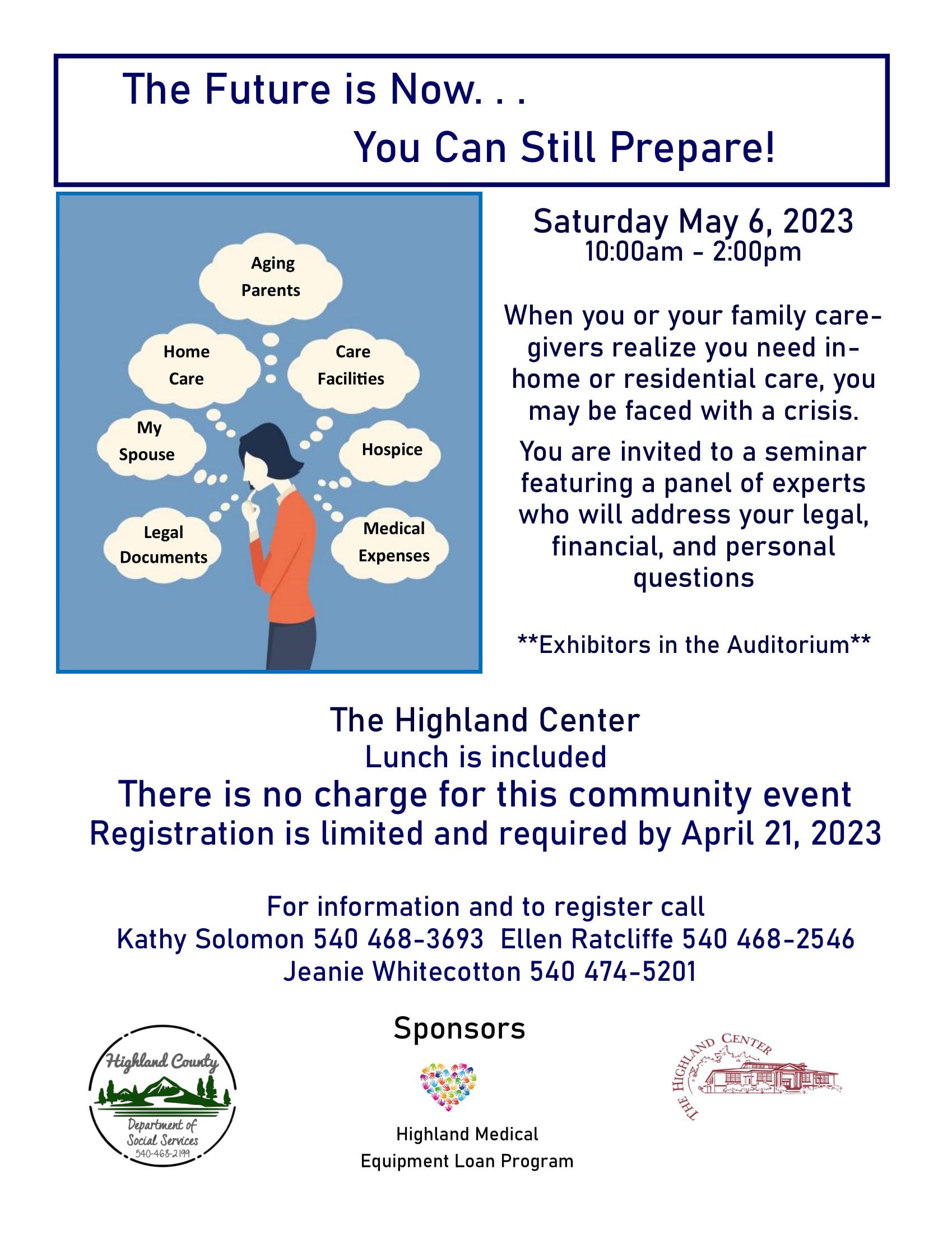 Sponsors for the event are the Highland Medical Equipment Loan Program, Highland County Department of Social Services, and The Highland Center