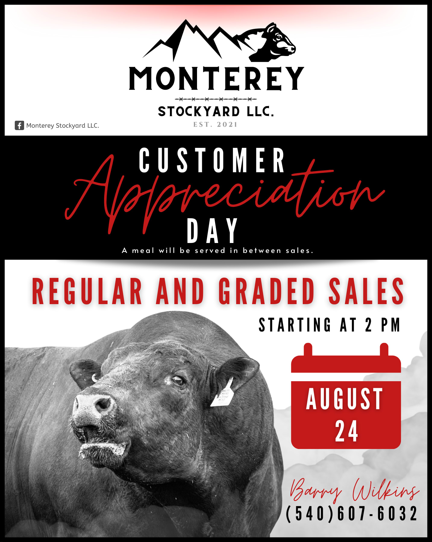 Monterey Stockyard LLC. is holding their Customer Appreciation Day on Wednesday, August 24 at 2 pm!
