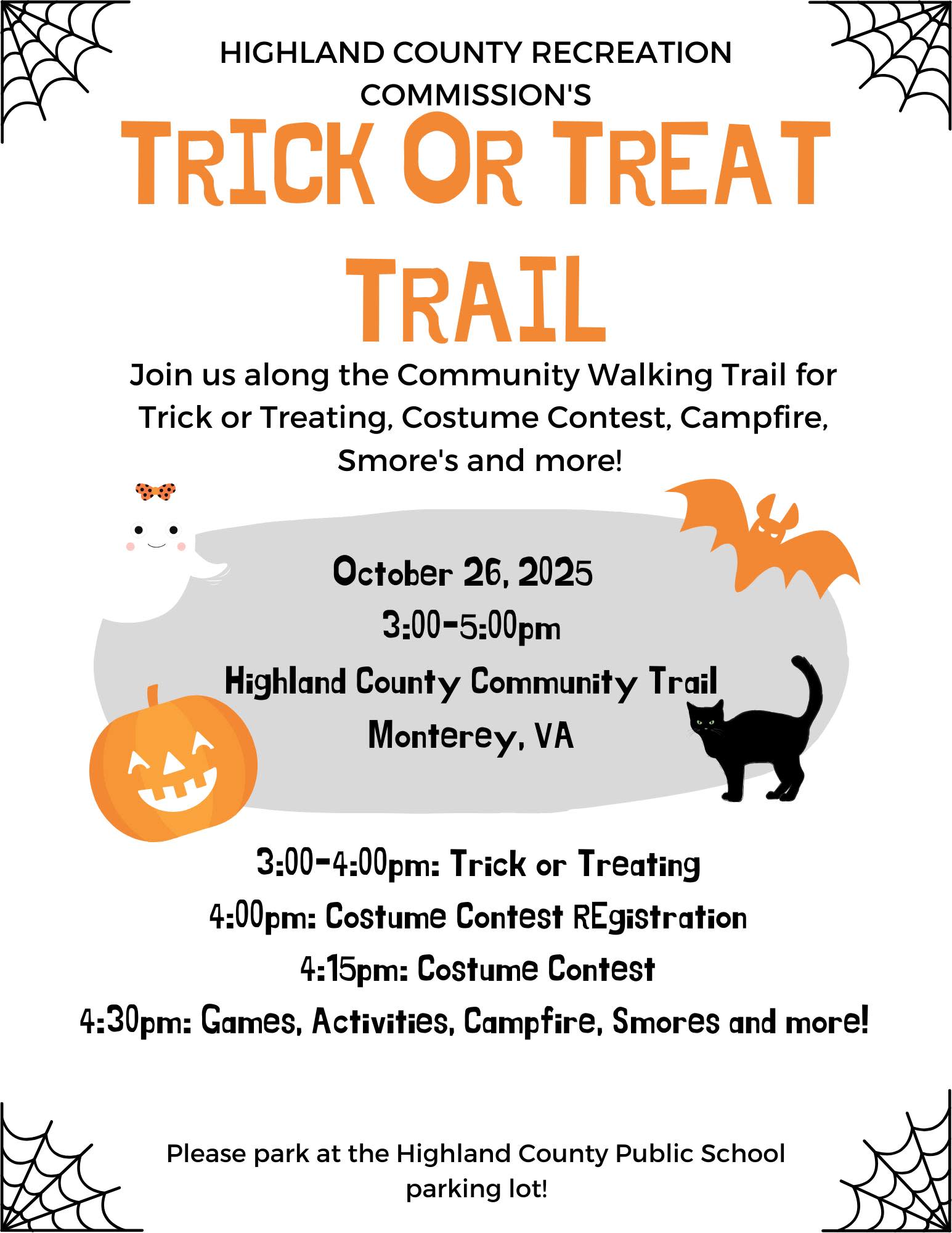Join your friends along the Highland County Community Walking Trail for Trick or Treating, Costume Contest, Campfire, S'mores and more! October 26, 2025, 3 PM to 5 PM